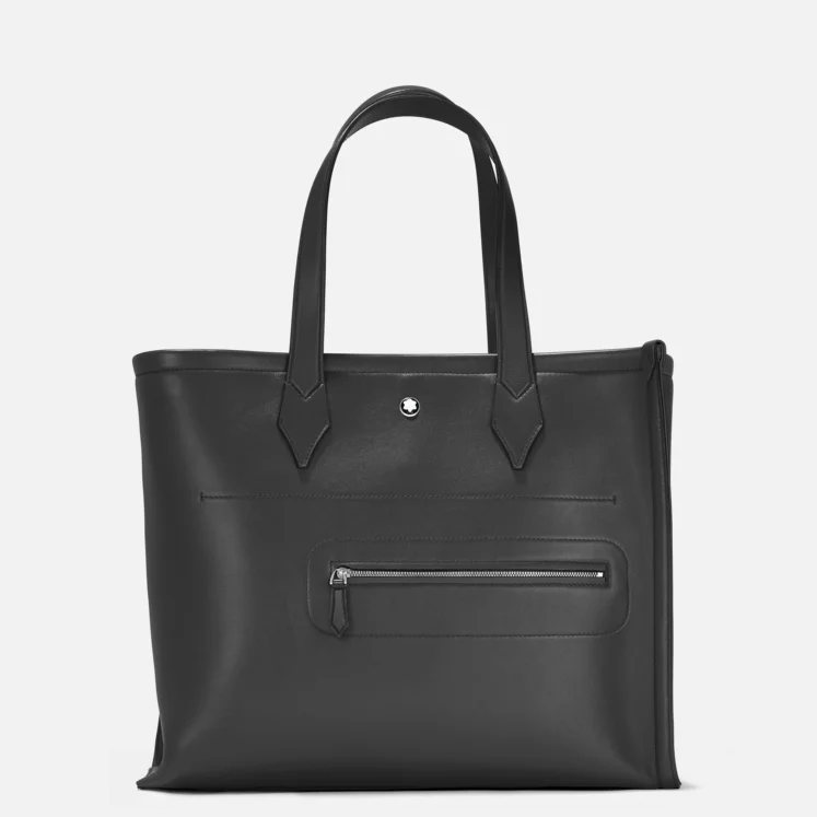 Este bolso, un aliado práctico para todo el día, presenta un aspecto impecable. Este bolso tote multifuncional, confeccionado en piel suave color negro clásico, presenta un bolsillo con cremallera en la parte delantera, mientras que en su interior encontramos otro bolsillo con cremallera, dos bolsillos abiertos, una anilla para artículo de escritura y una correa de piel para mantener a salvo las llaves.
