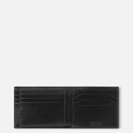 Cartera para 12 tarjetas, de piel de becerro europea negra con brillo único Montblanc, interior en Jacquard con marca Montblanc, emblema Montblanc con anillo paladiado, 12 compartimentos para tarjetas de crédito, 2 compartimentos para billetes, 5 bolsillos adicionales