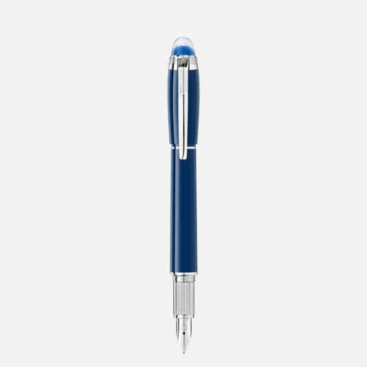 StarWalker Blue Planet evoca un paseo entre las estrellas, explorar el cosmos y las galaxias lejanas, y participar en una de las aventuras más misteriosas y poderosas que la humanidad haya jamás emprendido: la exploración espacial. Desde esta perspectiva, nos acercamos a nuestro planeta Tierra para inspirarnos en el agua, la fuente de la vida. La tecnología StarWalker del emblema cuenta con una cúpula azul translúcida con una estrella flotante en la parte superior, que representa a la Tierra vista desde la luna mientras se alza sobre su horizonte. StarWalker Precious Resin luce detalles platinados y depósito y capuchón de resina preciosa azul. La pluma estilográfica elaborada a mano tiene un plumín de oro 585 de 14 K rodiado.